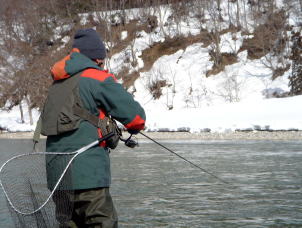 ニジマスを釣り上げていた。どんな状況でも