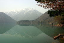 ビックレインボーに標準を変えてみた。未だ残雪の残る山々が静まりかえ