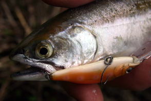 をきかせて食わせのタイミングを作ってやると銀毛が一匹後方をフラフラ