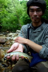 歩いてやっと辿りつける場所。魚の数も半端ではないが、そこは熊、猿、猪、鹿などのテリトリーだ、鈴を携帯しながら、気