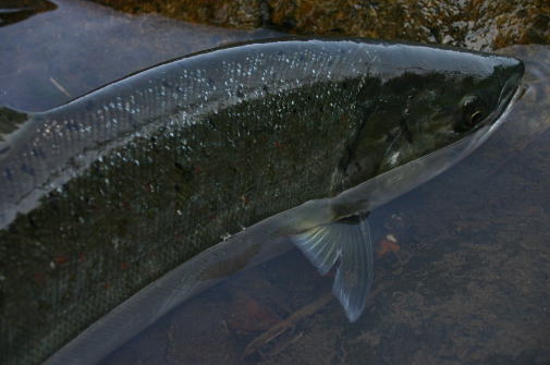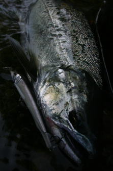 キマスを手中に収める事が出来た。鮭と言うにふさわしい筋肉質な体高あるボディー、薄っすらと残る気品溢れる朱点、