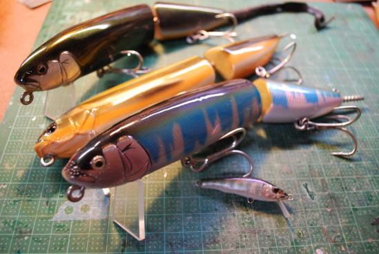 やっと半年がかりで完成させたビックベイトの向こうには、管釣り用の